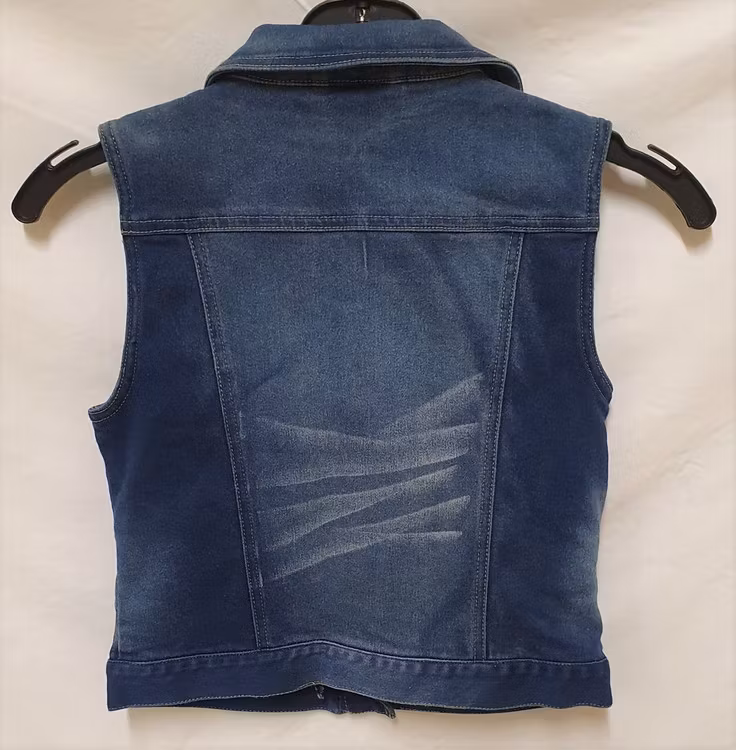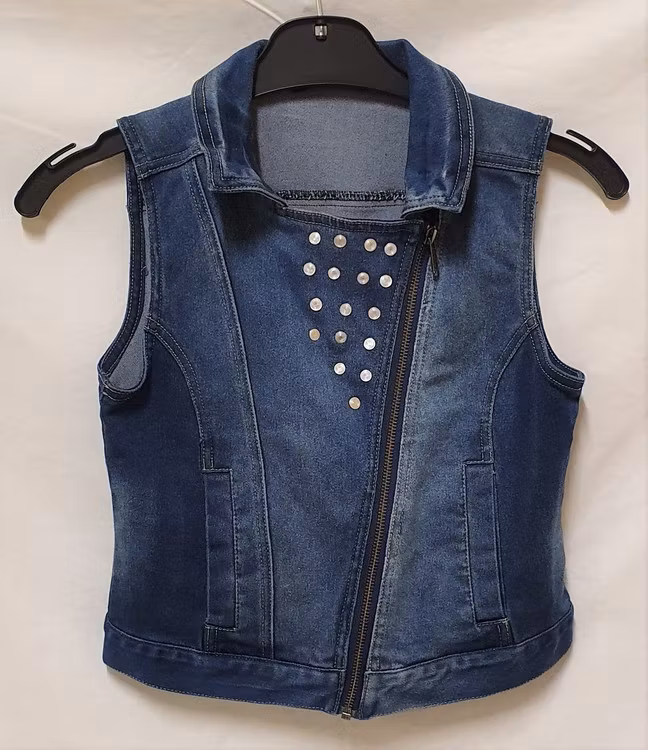 Jeansväst med urtvättad look. 2 fickor fram och nit-dekorationer.