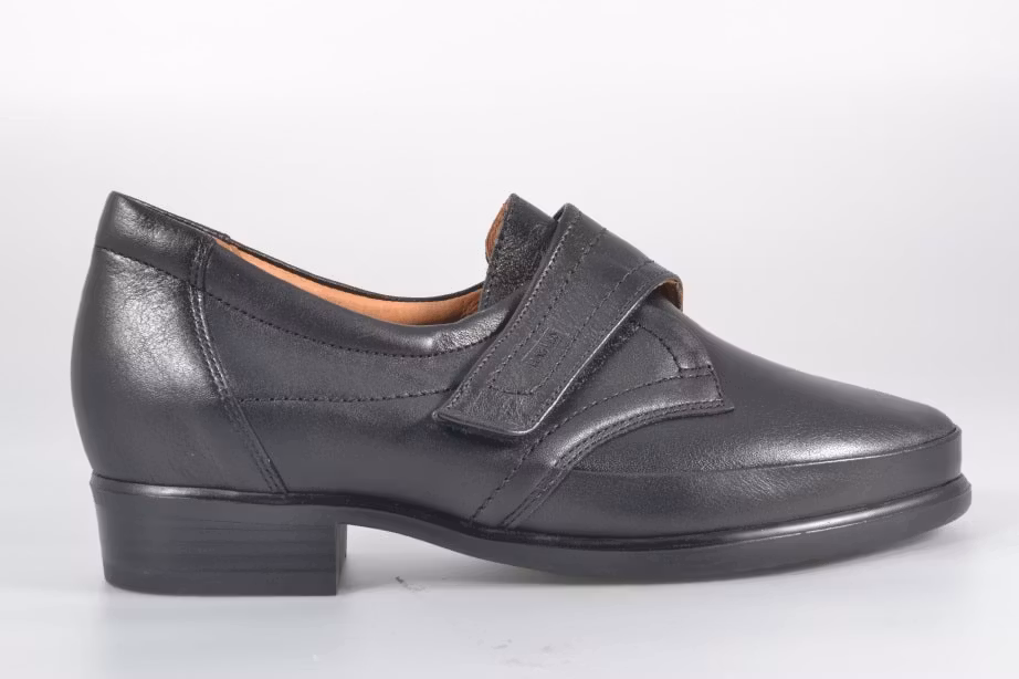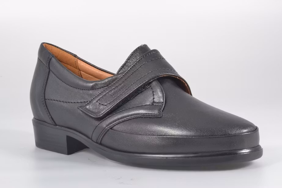 Promenadsko i stretchskinn som gör det bekvämt åt foten. Kardborreöppning över foten för ett lättare isteg. Urtagbar innersula så att du enkelt kan byta till dina egna fotbäddar.