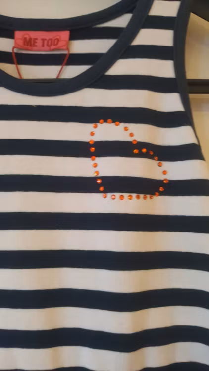 Blå vit randig klänning med underdel i jeansfärg från Me Too. Sött paljetthjärta på bröst.