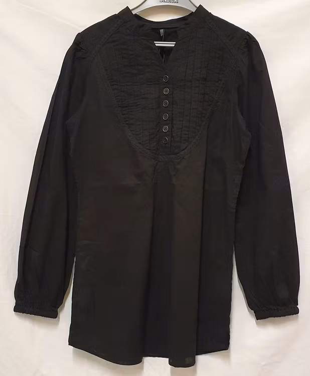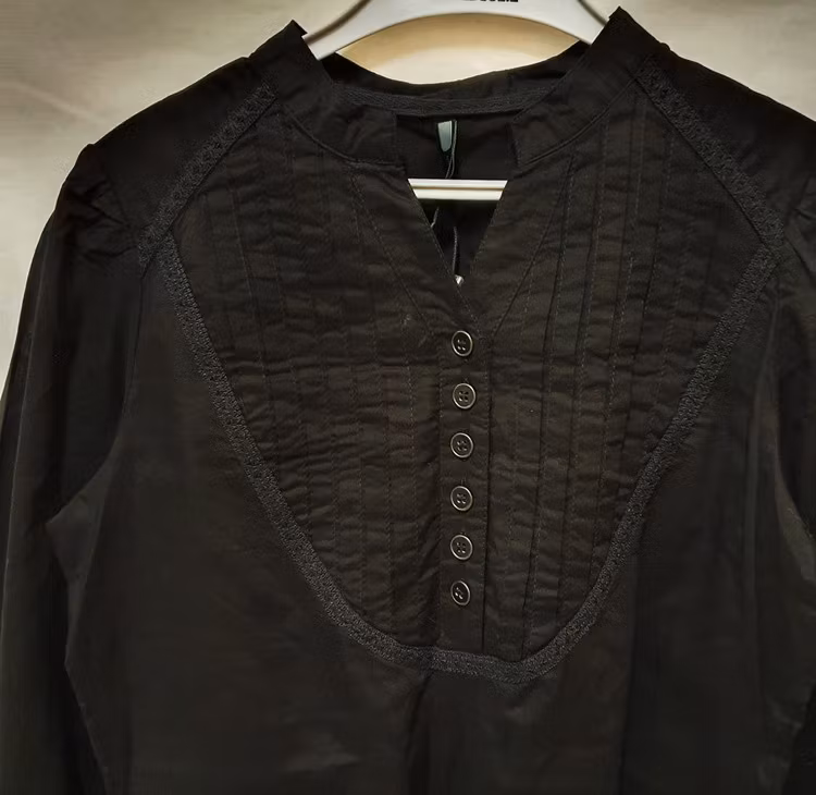 Snygg svart skjorta med läckra detaljer från Freeze. Resårparti i rygg som gör att den sitter riktigt snyggt. Resår i ärmslut.