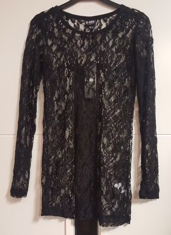 Svart spetströja Fas-922 från D-XEL. 249 kr 62 kr Svart långärmad tröja helt i spetsMaterial: 92 % polyester, 8 % elastanTvättas i 30 grader Färg Svart Storlek 128 140 152 164 I lager. Lägg i korgen Lagersaldo: Artikelnummer: 616 Leverantör: D-XEL Dela Information Svart långärmad tröja helt i spetsMaterial: 92 % polyester, 8 % elastanTvättas i 30 grader